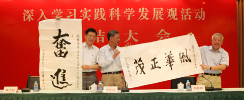 新闻中心讯 9月14日下午,我校在光华楼吴文政报告厅召开深入学习实践科学发展观活动总结大会。部属高校学习实践活动第七指导检查工作组组长韩星臣出席大会并讲话。校党委书记、校学习实践活动领导小组组长秦绍德作总结报告。大会由校长、校学习实践活动领导小组组长杨玉良主持。