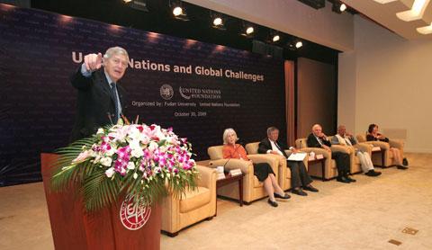 新闻中心讯 2009年10月30日,联合国基金会董事会一行访问我校,并在光华楼与我校300余名学子就“联合国与全球挑战”的主题进行座谈。