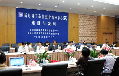 2009年10月30日逸夫科技楼二楼报告厅,由我校学生职业发展教育服务中心与上海市高校毕业生就业指导中心联合主办的“新形势下高校就业指导中心建设与发展论坛”顺利开幕。复旦大学党委副书记陈立民老师、市高校毕业生就业指导中心主任董晓峰及沪上部属院校、地方本科院校、高职高专院校等近50所高校的就业中心领导及老师参加了此次论坛。论坛主要围绕当前新形势下高校就业指导中心在建设与发展过程中面临的一些问题展开讨论和交流。