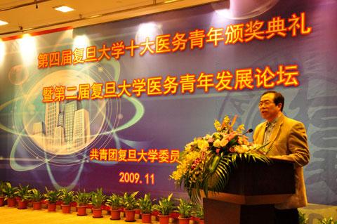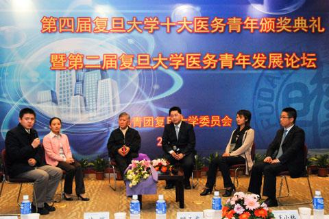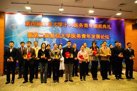 第四届“复旦大学十大医务青年”颁奖典礼暨第二届医务青年发展论坛于2009年11月13日在华山医院会议厅举行。校党委副书记王小林、工程院院士复旦大学附属华山医院手外科教授顾玉东、校团委副书记徐阳及我校附属中山医院、华山医院、肿瘤医院、眼耳鼻喉科医院、妇产科医院、儿科医院的党政领导出席了此次活动。