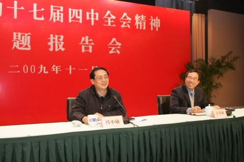 为认真学习贯彻党的十七届四中全会精神,帮助我校基层党务工作者全面把握全会对基层党组织建设提出的新要求,校党委于11月19日举行专题报告会,邀请上海市党的十七届四中全会精神宣讲团成员、市委组织部副部长冯小敏作专题报告。校党委副书记王小林主持报告会。