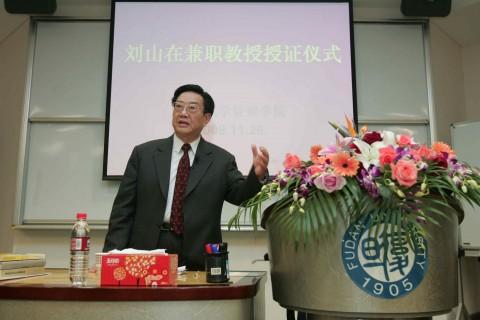 管理学院副院长薛求知主持了刘山在教授担任我校管理学院兼职教授的授证仪式。秦绍德书记在授证仪式上致辞,向刘山在教授多年以来为复旦大学作出的贡献表示了感谢,并且为刘山在教授正式成为一名“复旦人”表示热烈欢迎。随后,陆雄文院长向刘山在教授颁发了聘书。同时,刘山在教授也向学院赠送了多部自己撰写的书籍。