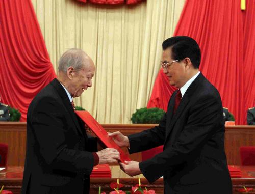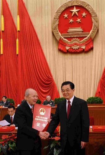 新闻中心讯 中共中央、国务院1月11日上午在北京隆重举行2009年度国家科学技术奖励大会。党和国家领导人胡锦涛、温家宝、李长春、习近平、李克强出席大会并为获奖代表颁奖。我国著名数学家、我校数学研究所名誉所长、中国科学院院士谷超豪院士荣获国家最高科学技术奖。