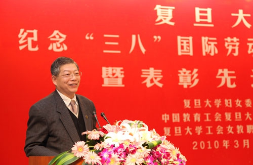杨玉良会上发表热情洋溢的讲话。他指出,妇女工作是复旦向世界一流大学迈进过程中很重要的一部分。他表示,学校会努力为女性创造一个真正完全公平的环境,让女性教职员工能在自由的环境下张扬个性。