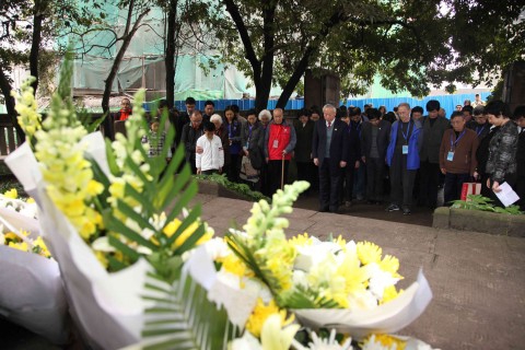 新闻中心讯 今年清明节,位于重庆夏坝的复旦大学旧址迎来了百余位复旦师生和抗战时期曾经在北碚夏坝就读的复旦老校友。他们汇集在嘉陵江边,共同悼念和缅怀所有抗战期间在此牺牲的复旦爱国师生,并向被日军轰炸牺牲的孙寒冰教授墓园献花。时值复旦大学建校105周年,修葺一新的抗战时期复旦大学北碚旧址纪念馆也于4月3日正式开馆。据悉,新开放的纪念馆内内再现了复旦大学北碚时期的历史和重要人物,尤其是重点展示了对重庆出贡献的复旦校友和牺牲在重庆的校友事迹。重庆市副市长谢小军,复旦大学党委书记秦绍德,复旦大学前校长王生洪,副校长许征等复旦和重庆市领导出席了开馆仪式。