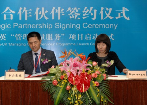 新闻中心讯 5月7日,复旦医院管理有限公司及上海泰福健康管理咨询有限公司、中山医院、华东医院、妇产科医院和眼耳鼻喉科医院分别与世界著名健康保险和医疗保健跨国公司英国保柏(Bupa)集团签署医院“管理质量服务”协议,此标志着中英两国政府签署的“中英卫生创新伙伴”计划已进入实质性实施阶段,附属医院特需医疗服务及结算流程将与国际商业保险机构接轨。