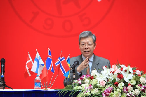 当天上午,中国-北欧“校长峰会”在复旦大学光华楼隆重开幕,并由此拉开各项庆典活动的序幕。此次,以“中国-北欧高等教育与研究的合作”为主题的校长峰会,除复旦还吸引了同济大学、浙江大学、南京大学等中国高校和包括瑞典隆德大学、挪威奥斯陆大学、芬兰赫尔辛基大学等世界一流大学在内的22所北欧知名高校的校长、副校长及出席峰会。杨玉良校长和北欧部长理事会教育与研究处处长Gard Titlestad分别致开幕辞。