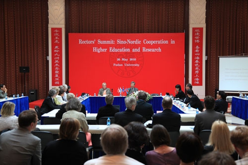 峰会上,中国高校领导和北欧高校校长聚焦高等教育的商业化、国际化和创新力,就由此对高等教育产生的机遇和挑战展开热烈讨论。挪威奥斯陆大学校长、冰岛大学校长和挪威科技大学校长根据本校的特色学科,分别介绍了北欧高校中人文学科、医学和技术学科的现状和最新成果,并充分表达了继续发展和中国高校在这些领域研究合作的愿景。峰会最后回顾了复旦北欧中心15年的发展,卑尔根大学Gunnar Haaland教授和复旦大学范丽珠副教授向与会代表们展示了复旦-卑尔根联合课程的国际性和前沿性,瑞典隆德大学的Jan-Olof Nilsson教授和Kjell Nilsson教授声情并茂地同大家分享了他们在复旦北欧中心十年的研究历程和心中那份浓厚的中国情结。