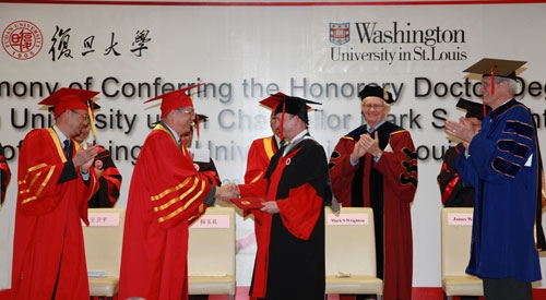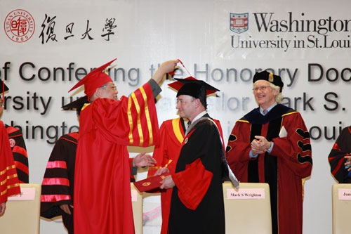 2010年5月29日,复旦大学正式授予美国华盛顿大学校长Mark Wrighton教授“名誉博士”称号,并在复旦大学管理学院举行了简短而热烈的颁授仪式。