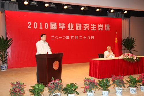 “今天作为校党委书记给同志们上党课,但我更愿意以一名老师与学长的身份,和大家谈谈肺腑之言。我不讲什么大道理,就是谈心。”谆谆教诲寄深情,在建党89周年前夕的6月28日上午,校党委书记秦绍德老师为来自全校各院系的毕业研究生党员上了一堂特殊的党课。