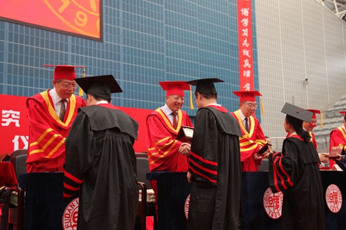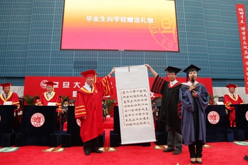 曾经以为这一天很遥远,曾经希望这一天快点到来。但这一天真的到时,心头突然涌上千言万语,心中充满着不舍和留恋。“此时此刻,我最想说的词是感谢,最深刻的感悟是成长,最深沉的感情是眷恋,最美好的希望是未来,”毕业生代表、计算机科学技术学院博士生马欢飞在发言中深情地说。九年前,身有残疾的他在大学的门外徘徊,是复旦老师的一句话打消了他的顾虑,将他领进复旦的大门。九年来,母校的一花一草,一时一景都早已深深地镌刻在内心深处。不能忘记课堂上老师的教诲与辅导员的关怀,不能忘记初次写论文时的拙劣和导师的耐心指点,不能忘记无数个不眠之夜里的奋斗与师兄弟们的陪伴。“从明天起,我们将离开母校,无论我们身在何处,从事怎样的工作,我们都有一个共同的名字:复旦人,我们将把个人的理想与国家的命运紧紧地联系在一起,为母校的发展和祖国的繁荣而贡献自己的力量。”