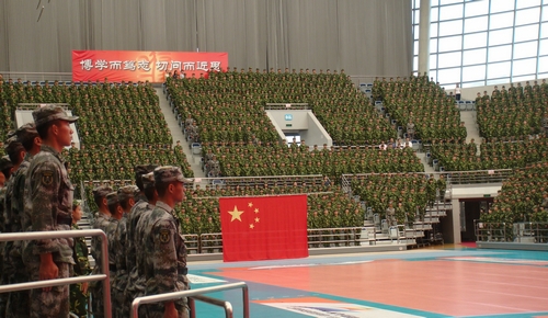 本次动员大会正式拉开了2009级学生军训的帷幕。在为期10天的军训中,我校09级近3000名同学将在73031部队70余位官兵的带领下认真学习各项军事技能和国防知识,在提高军事素养的同时,进一步锻炼自己的身体素质和意志品质。