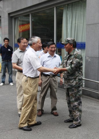 新闻中心讯 8月29日,校党委书记秦绍德、副书记陈立民在校本部慰问参加2009级军训的73031部队教导队官兵。