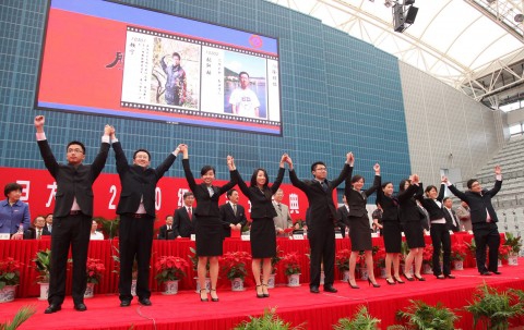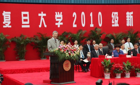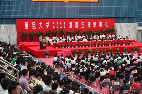 新闻中心讯 9月3日上午,复旦大学2010级本科生、研究生新生开学典礼在正大体育馆隆重举行。校党委书记秦绍德、校长杨玉良,常务副校长张一华、王卫平,校党委副书记陈立民、刘建中、王小林,副校长蔡达峰、陈晓漫、桂永浩、金力,部分教师代表和院系负责同志,以及全体2010级本科生、研究生总计7000多人参加开学典礼。