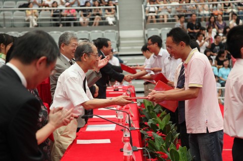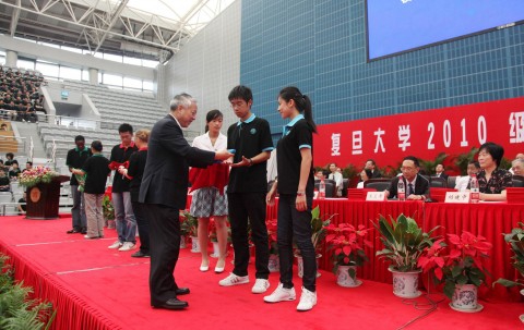 “复旦复旦旦复旦,日月光华同灿烂!”在全场嘹亮的校歌声中,2010级本科生、研究生新生开学典礼圆满结束。