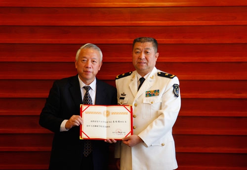 海军大连舰艇学院政委康非代表舰艇学院全体官兵向秦绍德一行表示热烈欢迎,并简要介绍了舰艇学院的发展情况。随后,大连舰艇学院向秦绍德颁发了名誉教授的聘书。秦绍德高兴的接受聘任并表示将为增进两校交往作出更多努力。他希望两校以学习楷模为契机,加强交流,相互学习,为教育事业和国防事业作出更大的贡献。