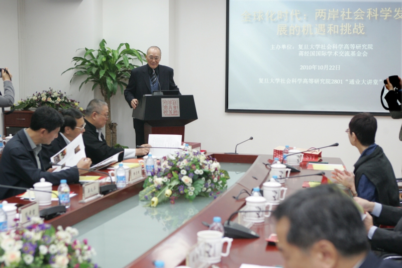 此次圆桌会议分上下午两个专场,分别由两岸政治学、历史学、社会学的教授讨论发言。台湾大学社会科学院院长赵永茂教授在发言中提到,社会科学的发展应注重跨领域的整合和跨国合作,尽量与世界接轨,承担世界责任。上海社科院潘世伟书记从怎样对待传统学术、怎样对待外部的知识体系等方面,谈了自己对社会科学发展的一些看法。校社会科学高等研究院院长邓正来教授在题为“全球化时代中国社会科学的知识转型”的发言中,提到社会科学的发展面临如何去构建一个新的文明的问题。台湾中研院院士、中研院近史所特聘研究员陈永发从历史资料来检验近现代史,提到如今中国变化很大、发展很好,更应该反省过去的成功和失败,以此为鉴。中研院人文社会中心主任、中研院社会所章英华研究员站在社会学的角度,从体制上、科技上的变化等方面比较海峡两岸社会转型。校中外现代化进程研究中心主任姜义华教授在发言中建议,建立专门机构推进两岸文献档案的共同利用,并筹集必要的资金,共同培养一批年青的学者。上海社科院副院长黄仁伟研究员在题为“两岸国际问题研究发展趋势”的发言中谈到,两岸过去对国际问题的研究有所不同,大陆讲究实用,台湾注重学理。如今双方都在转变、互补,大陆从为政治为战略服务转向更注重学科学理,台湾从只关注美、日两头转而关注亚太地区。校经济学院副院长韦森教授在发言中提到,大陆台湾关系密切,面临的问题都是共同的,需要相互借鉴,如大陆社会转型该向何处去,台湾民主化转型很值得借鉴。