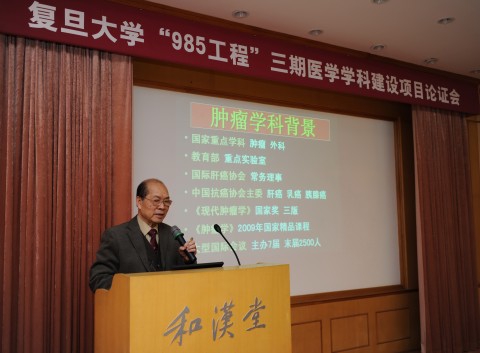 根据此前我校学术发展规划实施工作委员会医学组的初步遴选,进入本次论证的10个重大项目负责人在两天的论证会上先后向专家组作了汇报,他们是袁正宏教授汇报的“病原微生物与传染病研究”,姜庆五等教授的“健康发展研究”,葛均波教授的“心脑血管疾病研究”,汤其群教授的“代谢相关性疾病研究”,马兰教授的“脑科学研究院和医学神经生物学国家重点实验室建设”,汤钊猷、邵志敏等的“肿瘤研究”,杨芃原的“表观遗传医学科研平台”,黄国英的“生殖与发育健康研究”,朱依谆教授的“创新药物研发平台”和朱同玉教授 “微创医学研究”等。