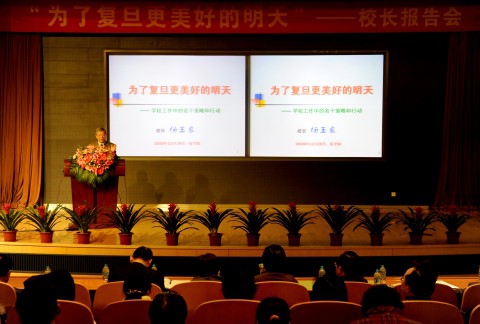 新闻中心讯 2010年12月29日下午,枫林校区明道楼二楼500人报告厅座无虚席,连走道也站满了人,杨玉良校长“为了复旦更美好的明天”的专题报告,受到枫林校区师生热烈欢迎。