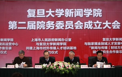 复旦大学新闻学院新一届院务委员由中央新闻单位驻沪机构负责人、上海各主要新闻单位负责人,以及一些新媒体负责人、业界著名人士担任。