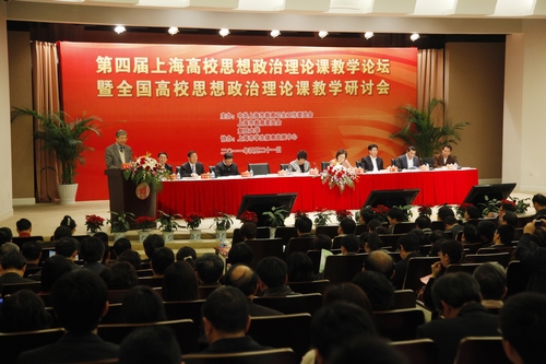 新闻中心讯 2011年4月21日下午,第四届上海高校思想政治理论课教学论坛暨全国高校思想政治理论课教学研讨会在复旦大学举行。教育部副部长李卫红、上海市委副书记殷一璀出席会议并做重要讲话。教育部社科司司长杨光,市委副秘书长姚海同,市委宣传部副部长潘世伟,市教卫党委副书记、市教委主任薛明扬,教育部社科司副司长徐维凡,市教卫党委副书记、市教委副主任高德毅出席了会议。上海高校党委书记、校长,分管思政课建设工作校领导,思政课教学机构负责人、部分高校思政课教师代表以及全国高校思想政治理论课教学研讨会与会代表近400人参加了论坛。