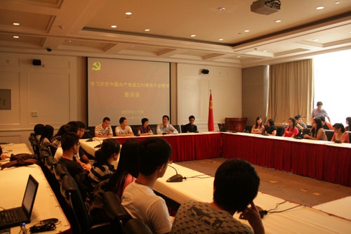 大会结束后,部分本科与研究生党员代表举行了学习座谈会,学习讨论总书记的重要讲话。党员同学们纷纷表示,胡锦涛总书记的重要讲话,高度总结了我们党90年来领导中国人民夺取革命斗争、国家建设和改革开放事业伟大胜利的基本经验,是指引党和国家今后一段时间建设中国特色社会主义事业、推动国家科学发展的重要文献,振奋人心,令人警醒。我们一定要认真学习领会,把讲话的精神真正贯彻到创先争优、服务师生和学习生活中去。