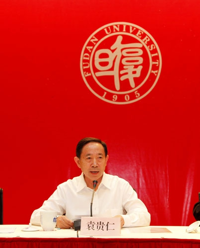 袁贵仁结合复旦大学的实际,针对加快建设世界一流大学,提出三点意见。第一,深刻认识肩负的崇高使命,加快建设世界一流大学步伐。建设世界一流大学是党中央交给复旦的光荣任务,也是复旦大学义不容辞的时代责任。这是一项崭新的事业,也是一项长期的艰苦事业。第二,坚持以提高质量为生命线,全面提升办学水平。要以提高人才质量为主攻方向,以科技创新能力为重要支撑,以服务经济发展为导向,以推进文化创新为己任,以高素质教师队伍建设为保障,以改革创新为强大动力。第三,加强领导班子建设,为建设世界一流大学提供坚强的保障。他特别要求学校领导班子懂政治、讲政治,增强政治敏锐性;抓落实,求实效,着力提高执行力;坚持民主集中制,增强领导班子团结;严格廉洁自律,始终坚持勤政、廉政。