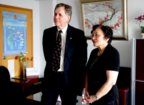 9月20日上午,副校长金力和外事处处长朱畴文参加了在上海东郊宾馆举行的阿斯利康诺贝尔医学创新计划中国启动仪式,金力致辞;9月21日上午,副校长兼上海医学院院长桂永浩在枫林校区会见了巴里•马歇尔一行,桂永浩代表学校向巴里•马歇尔赠送礼品,巴里•马歇尔向桂永浩回赠2005年他与罗宾•沃伦共同获得诺贝尔生理学或医学奖时的宣传海报;随后,巴里•马歇尔特地去闻玉梅院士办公室看望了老朋友,与闻玉梅院士亲切交谈,并在教育部/卫生部分子病毒学重点实验室副主任谢幼华研究员陪同下参观了该实验室;中午,巴里•马歇尔与上海医学院20名研究生就当前共同关心的问题进行面对面圆桌讨论;上海医学院学生以“2对1”的形式采访了巴里•马歇尔教授。