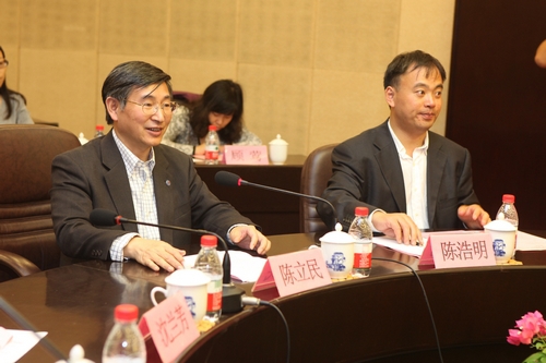 随后,陈立民代表学校对中央电视台一行莅临复旦大学表示热烈欢迎。他在致辞中向来宾重点介绍了复旦大学在人才培养方面的改革和举措,并就全面落实金伙伴计划提出了4点要求:第一,广泛宣传,积极引导。复旦大学一直倡导毕业生将个人的发展与祖国的需要相结合,央视是同学们大展宏图的舞台,复旦今后有责任输送更多的优秀学子为央视的发展做贡献。第二,抓住机遇,共谋发展。我校各部门、各院系要全面落实双方在毕业生招募、就业实习、人才培养、教师进修和员工培训等方面的深度合作。充分发挥我校的学术优势和人才优势,充分对接央视的资源优势和技术优势,强强联合,共同发展。三是密切配合,做好今年的人才输送工作,为双方的合作开好局。四是认真研究,落实员工培训和教师进修等合作内容。