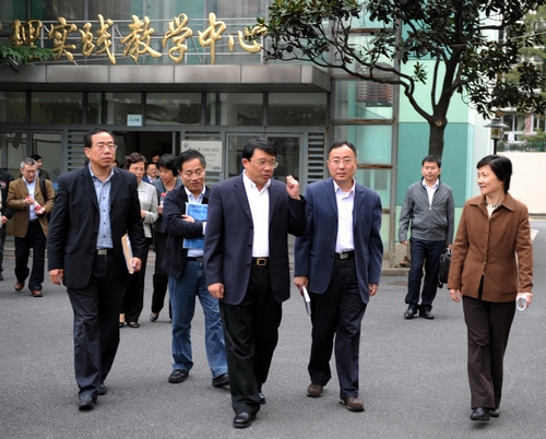 在上海医学院和护理学院,第一组全体同志先后参观了生理与病理生理系、生物化学与分子生物学系、分子医学教育部重点实验室、免疫学系、数字医学中心、糖复合卫生部重点实验室、医学分子病毒学卫生部和教育部重点实验室、医学神经生物学国家重点实验室、护理实践教学中心等。朱之文还饶有兴趣地与生理与病理生理学系主任陈思锋教授就整合医学和转化医学进行了探讨。在护理学院,调研组仔细参观了护理技能示教室和操练室(“模拟病房”)、健康评估实训室。朱之文在参观时叮嘱,教学实验室建设要坚持高起点、高目标,引进高端设备一定要充分开发其功能,做到物尽其用。