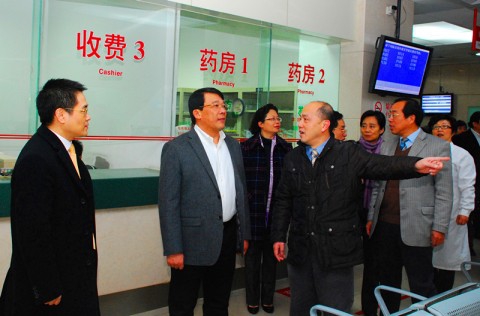 在华山医院丁强院长、党委顾小萍书记的陪同下,第一组全体同志察看了华山医院哈佛楼、院史陈列室、国际医疗中心和部分门急诊科室。在皮肤科门诊察看时,朱之文饶有兴趣地了解了挂号收费处窗口服务“满意度测评器”的使用情况,并叮嘱在场的学校有关部处负责人,在校机关部处管理考核中,附属医院一些有效的评价手段值得学习和借鉴。