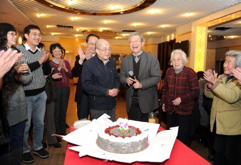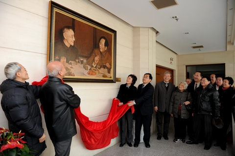 会议后,杨玉良等在医科图书馆参加了上海医学院医疗系61届校友捐赠“毛泽东主席宴请上医创始人颜福庆教授”油画揭牌仪式。杨玉良、彭裕文、程刚等还为原上海医学院院长石美鑫教授欢度94岁生日。