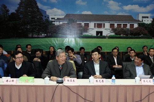 我校973项目“重要病毒持续性感染形成和维持的分子机制研究”首席科学家袁正宏教授、重大科学研究计划项目“生殖细胞基因组结构变异的分子基础”首席科学家金力教授、“异质界面诱导的新奇量子现象和调控”首席科学家龚新高教授、“植物表观遗传机制与重要调控蛋白质的功能和结构研究”首席科学家沈文辉教授、“代谢相关蛋白质修饰在肿瘤发生发展过程中的作用及机制”首席科学家赵世民教授分别做了发言,汇报了他们课题的研究情况。