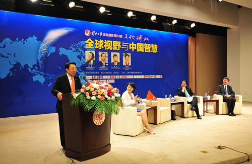 新闻中心讯 2012年5月26日下午,由解放日报报业集团、复旦大学校友会和上海论坛联合主办的复旦大学校友论坛特别活动暨解放日报报业集团第53届文化讲坛在复旦大学光华楼东辅楼吴文政报告厅隆重举行。三位在国际舞台上十分活跃、出任过国际组织领导人的复旦大学校友——中国联合国协会会长、联合国前副秘书长、外文系64届校友陈健,花旗集团亚太区主席、世界银行原常务副行长、外文系78届校友章晟曼,国际货币基金组织现任副总裁、经济系82届朱民聚首母校,为800余位母校师长和学弟学妹奉献了一场精彩的思维与文化的盛宴,纵论“全球视野与中国智慧”。中央电视台著名节目主持人、我校94届校友劳春燕担任了本次论坛的嘉宾主持。