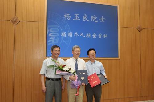 这次获赠档案资料仪式是第六届上海市档案馆日活动组成之一。会上,档案馆馆长周桂发首先介绍了近年来校史资料档案、名人档案、我的大学记忆三个系列的征集工作情况,以及本次获赠档案资料的大致内容。随后,杨玉良、蔡达峰向12位捐赠者颁发捐赠证书,周桂发馆长为5位校友颁发档案征集联络员证书。