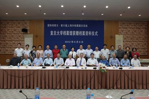 6月8日,复旦大学档案馆获赠档案资料仪式在逸夫科技楼二楼多功能厅举行。杨玉良校长,吴浩青院士家属等12位档案捐赠者、5位档案征集联络员以及各相关部门的负责同志、档案馆同志出席仪式。蔡达峰副校长主持仪式。