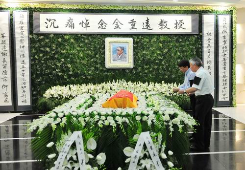 6月13日下午,著名历史学家、复旦大学首席教授、历史学系教授、复旦大学俄罗斯研究中心首任主任金重远遗体告别仪式在龙华殡仪馆银河厅举行。金重远教授因突发心脏病,于2012年6月7日7时54分在家中逝世,享年78岁。
