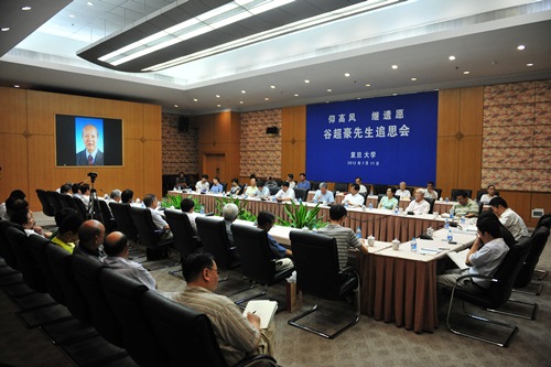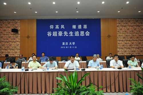追思会上,数学科学学院院长吴泉水教授向与会者通报了中共中央、中央部委、上海市、兄弟省市各级领导同志,民盟中央领导同志、其他领导同志以及社会各界人士以各种方式对谷先生逝世表示哀悼的相关情况。