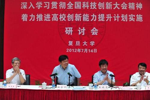 新闻中心讯 7月14日,“深入学习贯彻全国科技创新大会精神,着力推进高校创新能力提升计划实施”研讨会在复旦大学举行。教育部杜占元副部长受邀出席会议并讲话。教育部科技司、财务司和财政部教科文司的有关领导参加会议。校党委书记朱之文致欢迎词,校长杨玉良作交流发言。