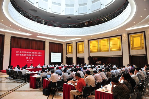 本次研讨会旨在深入贯彻落实全国科技创新大会精神和《关于深化科技体制改革 加快国家创新体系建设的意见》,着力推进“高等学校创新能力提升计划”的实施。各参会高校紧密围绕深入学习贯彻全国科技创新大会精神,就如何进一步发挥高等院校作为科技第一生产力和人才第一资源结合点的重要作用,发挥高校人才、学科、科研综合优势,提升高校创新能力和服务经济社会发展能力等重要内容进行了热烈讨论。