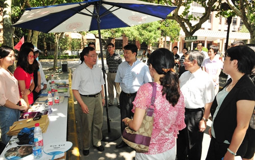 报到日当天,校园内热闹非凡。身着书院服的辅导员和导师们在各自的迎新点热情地迎接新生的到来。校党委书记朱之文,副书记陈立民,副校长桂永浩、陆昉到现场看望新生,慰问迎新工作人员。当天,学校还举办了新生家长座谈会。此外,为更好地解决报到当天校园及周边的交通问题,学校提前在网站上发布了报到日当天校内车辆行驶路线和交通管理规定,并在迎新点附近安排了小型车辆,免费帮助入住南区的新生送运行李。