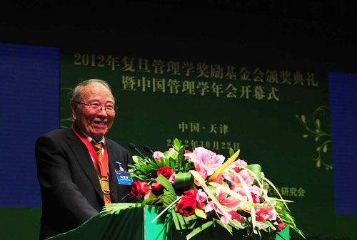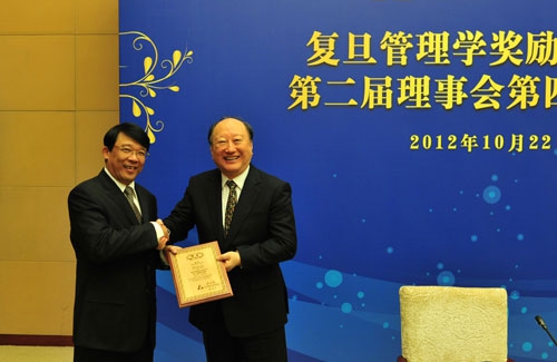 新闻中心讯 10月22日下午,由中国管理现代化研究会、复旦管理学奖励基金会主办,天津大学联合承办的2012年复旦管理学奖励基金会颁奖典礼暨中国管理学年会开幕式在天津大礼堂隆重举行。李岚清校友,及基金会领导徐匡迪、成思危等出席活动并颁奖。