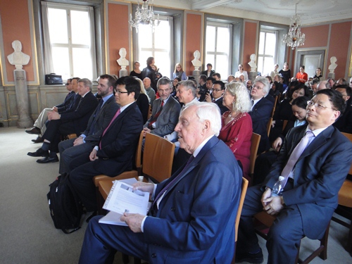 哥本哈根当地时间4月16日下午(北京时间4月16日深夜至17日凌晨),复旦-欧洲中国研究中心揭幕仪式在丹麦哥本哈根大学举行,北欧部长理事会秘书长Dagfinn Høybråten、丹麦高等教育研创部长Mr. Morten Østergaard、中国驻丹麦大使李瑞宇、复旦大学副校长林尚立、哥本哈根大学校长Ralf Hemmingsen出席了当天活动。