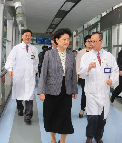 6月8日上午,中共中央政治局委员、国务院副总理刘延东同志在国家卫生计生委主任李斌,上海市委副书记、市长杨雄,上海市副市长沈晓明、我校党委书记朱之文等领导的陪同下,到中山医院考察调研住院医师和全科医师规范化培训工作。
