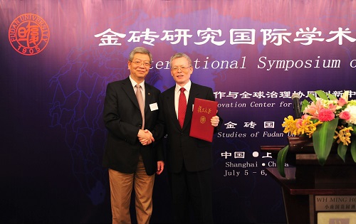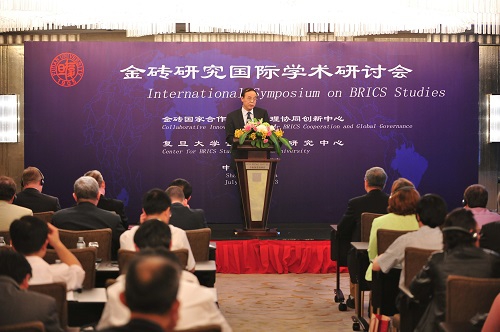 新闻中心讯 金砖国家研究国际学术研讨会于7月5至6日在复旦大学召开,中国的清华大学、复旦大学、华东师范大学、四川大学和浙江师范大学、俄罗斯国立高等经济学院、莫斯科国际关系学院、国立圣彼得堡大学、乌拉尔联邦大学的校长和学者,南非开普敦大学、比勒陀利亚大学、巴西里约热内卢大学、巴西瓦加斯基金会、印度管理学院、印度中国研究中心等机构的学者,以及来自欧盟、加拿大、日本共8个国家和地区的专家学者共近百人参加了这次会议。