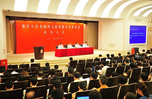 新闻中心讯 7月10日下午,复旦大学召开党的群众路线教育实践活动动员大会,认真学习贯彻中央精神,对全校教育实践活动进行动员部署。复旦大学党委书记、校党的群众路线教育实践活动领导小组组长朱之文作动员部署。中央第43督导组组长、华中科技大学原党委书记朱玉泉讲话。中央第43督导组副组长、教育部高等教育司副巡视员张爱龙等出席大会。大会由校党委副书记、校党的群众路线教育实践活动领导小组副组长王小林主持。