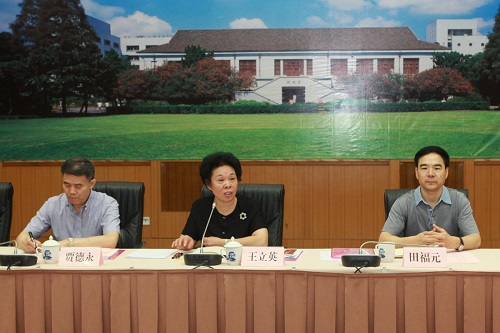 新闻中心讯 8月27日上午,教育部党组成员、中纪委驻教育部纪检组组长王立英同志来到复旦大学,检查我校党的群众路线教育实践活动开展情况,并听取干部群众对教育部工作的意见建议。教育部巡视办主任贾德永,中纪委驻教育部监察局副局级监察专员田福元等参加检查调研。