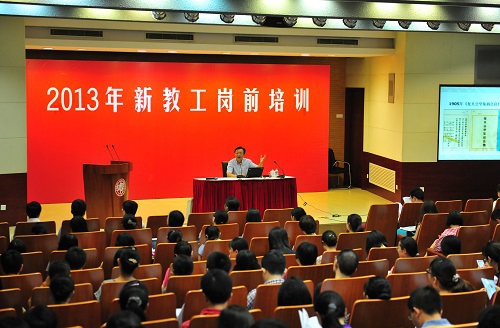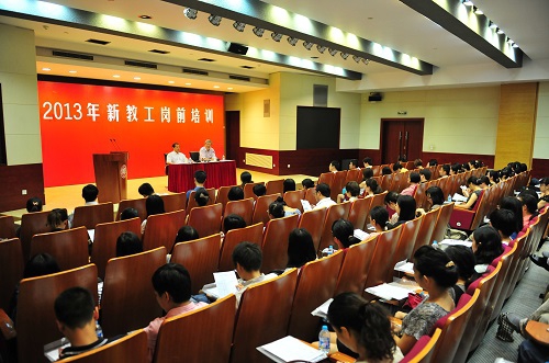 8月29日是新学期的第一天。一早,2013年入职的270多名新教工在校歌声中开始了为期两天的岗前集中培训。