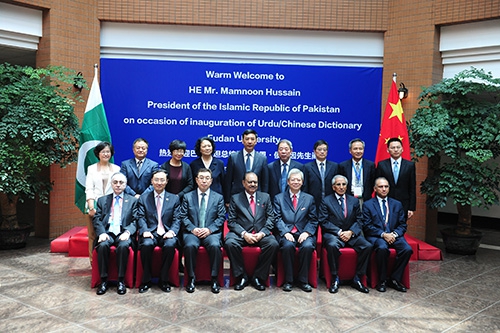 5月20日,巴基斯坦总统马姆努恩·侯赛因到访我校,出席由高等教育出版社、巴基斯坦驻华大使馆联合主办、我校协办的《乌尔都语汉语词典》新书发布会。发布会由高等教育出版社社长苏雨恒主持。巴基斯坦驻华大使马苏德·哈立德,我校校长杨玉良,教育部社会科学司司长张东刚、国家新闻出版广电总局进口管理司副司长赵秀玲,《乌尔都语汉语词典》作者、北京大学教授孔菊兰出席活动并致辞。