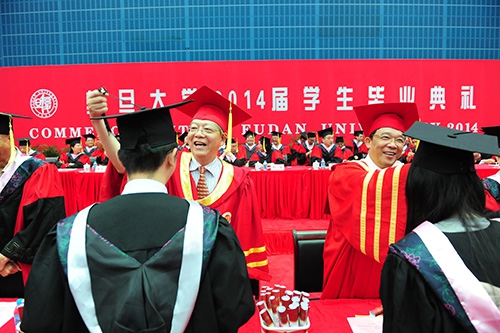 新闻中心讯 今天上午,复旦大学2014届本(专)科毕业典礼暨学位授予仪式在复旦大学正大体育馆隆重举行。3500多名2014届毕业生,近400名教师与中学校长代表和近千名家长,共同见证了这一庄严的时刻。复旦大学校长杨玉良、校党委书记朱之文及其他校党政领导出席了当天的毕业典礼。